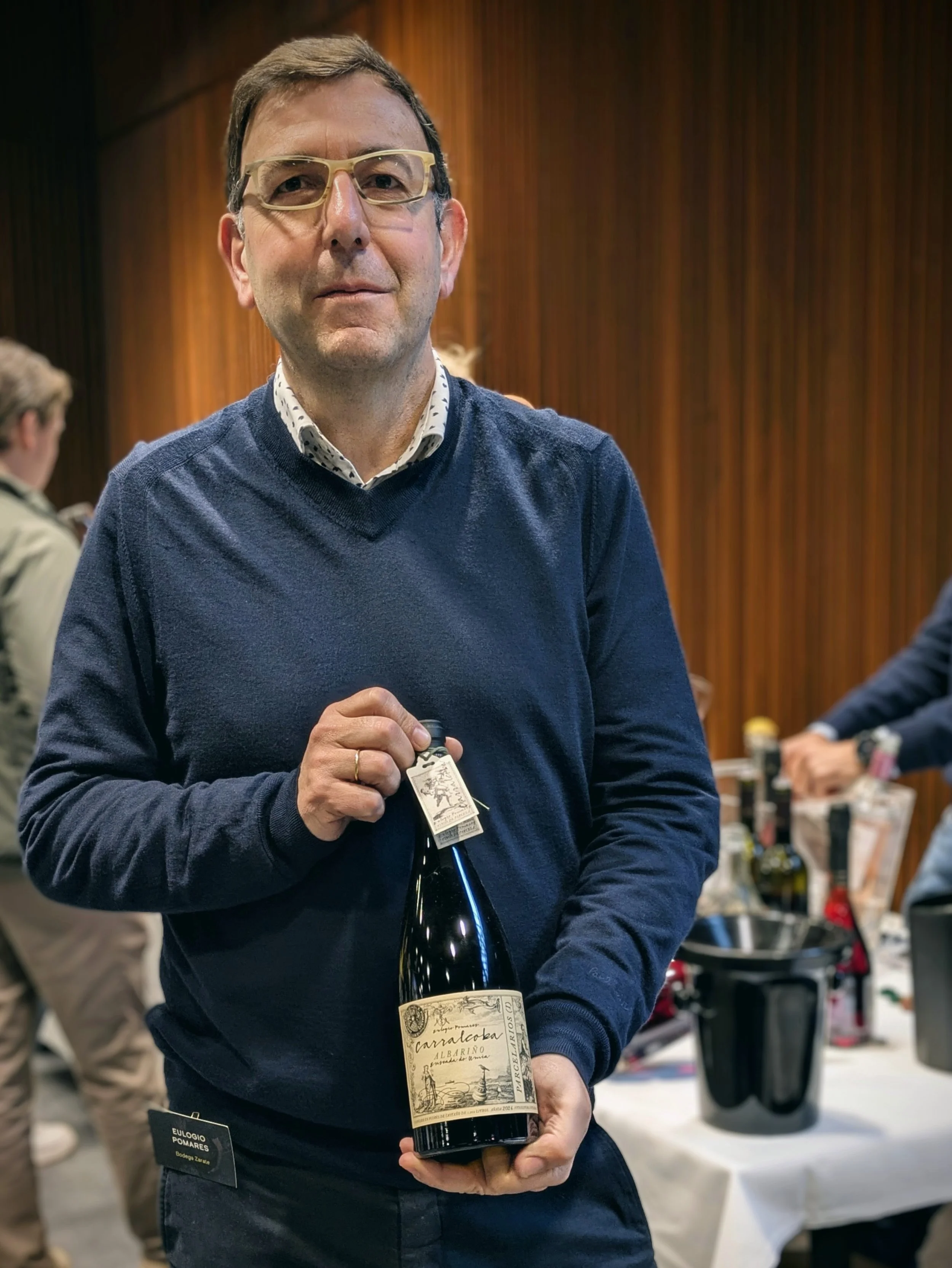 Eulogio Pomares viser stolt frem vinen han lager fra sin kones vinmark. Med god grunn da dette er Albariño av ypperste kvalitet.